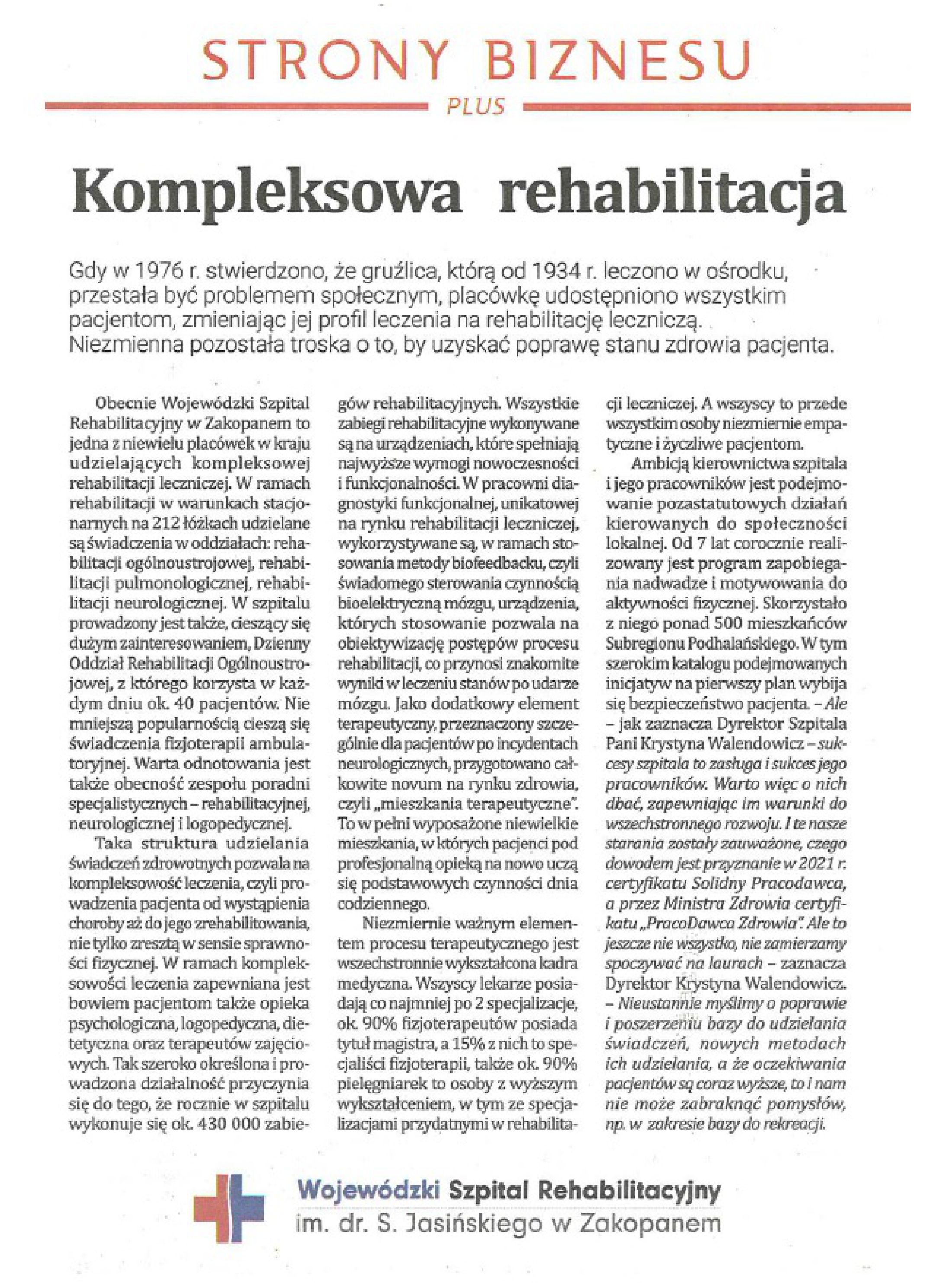 Artykuł  stronybiznesu.pl "Kompleksowa rehabilitacja" - link