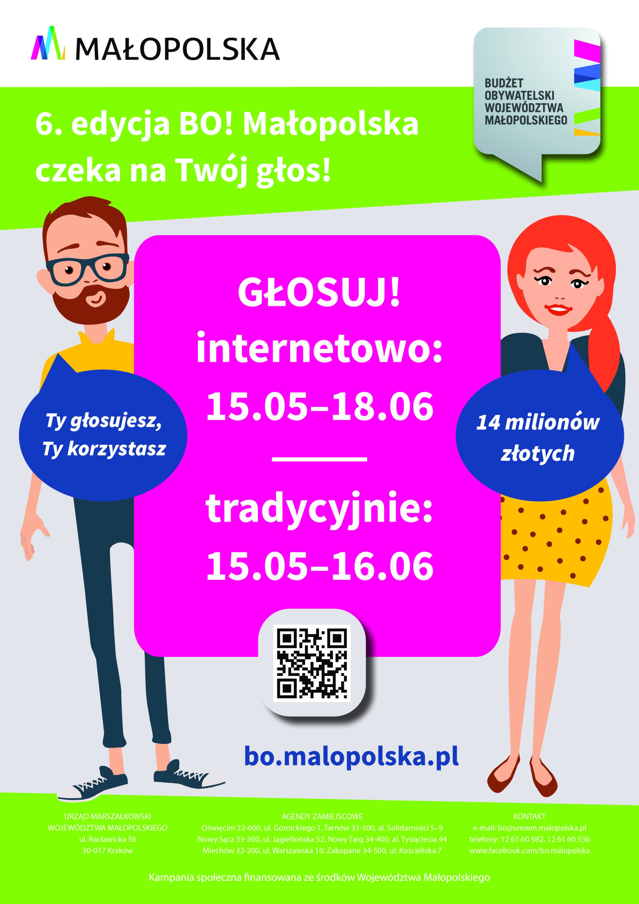 Głosować na nasze marzenia można internetowo na stronie https://malopolska.budzet-obywatelski.eu/glosowanie – podanie swoich danych (imię, nazwisko, PESEL, powiat zamieszkania) – wybierz zadania ogólnowojewódzkie - i tu następuje wybór numeru zadania: OGW-37 – pierwsze zadanie lub OGW-17 – drugie zadanie