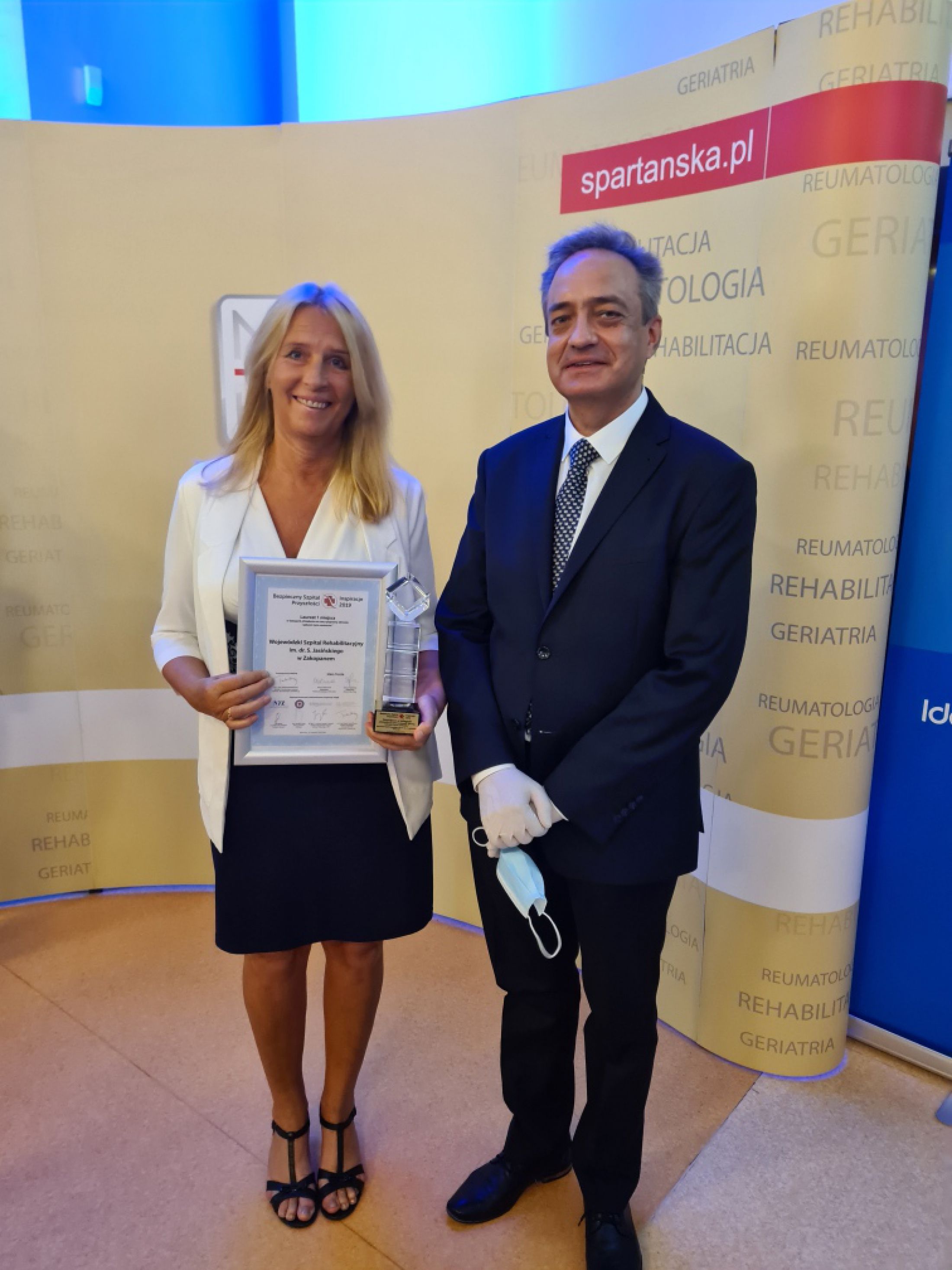 Z dumą i radością przyjęliśmy wiadomość, że dobra passa Wojewódzkiego Szpitala Rehabilitacyjnego im. dr. S. Jasińskiego w Zakopanem nie zamierza się kończyć. W dniu 24 września br. w Auli Narodowego Instytutu Geriatrii, Reumatologii i Rehabilitacji w Warszawie Dyrektor naszego Szpitala – Pani Krystyna Walendowicz odebrała dyplom za zajęcie I miejsca w konkursie „Bezpieczny Szpital Przyszłości – Inspiracje 2019” w kategorii „Działania na rzecz poprawy zdrowia i jakości życia seniorów”.Swój projekt zatytułowaliśmy „Senior to także Ty, tylko trochę później”, mając świadomość, że niedogodności wieku senioralnego dotkną nas wszystkich, szczególnie tych, którzy nie przygotowują się wcześniej na nadejście starości.