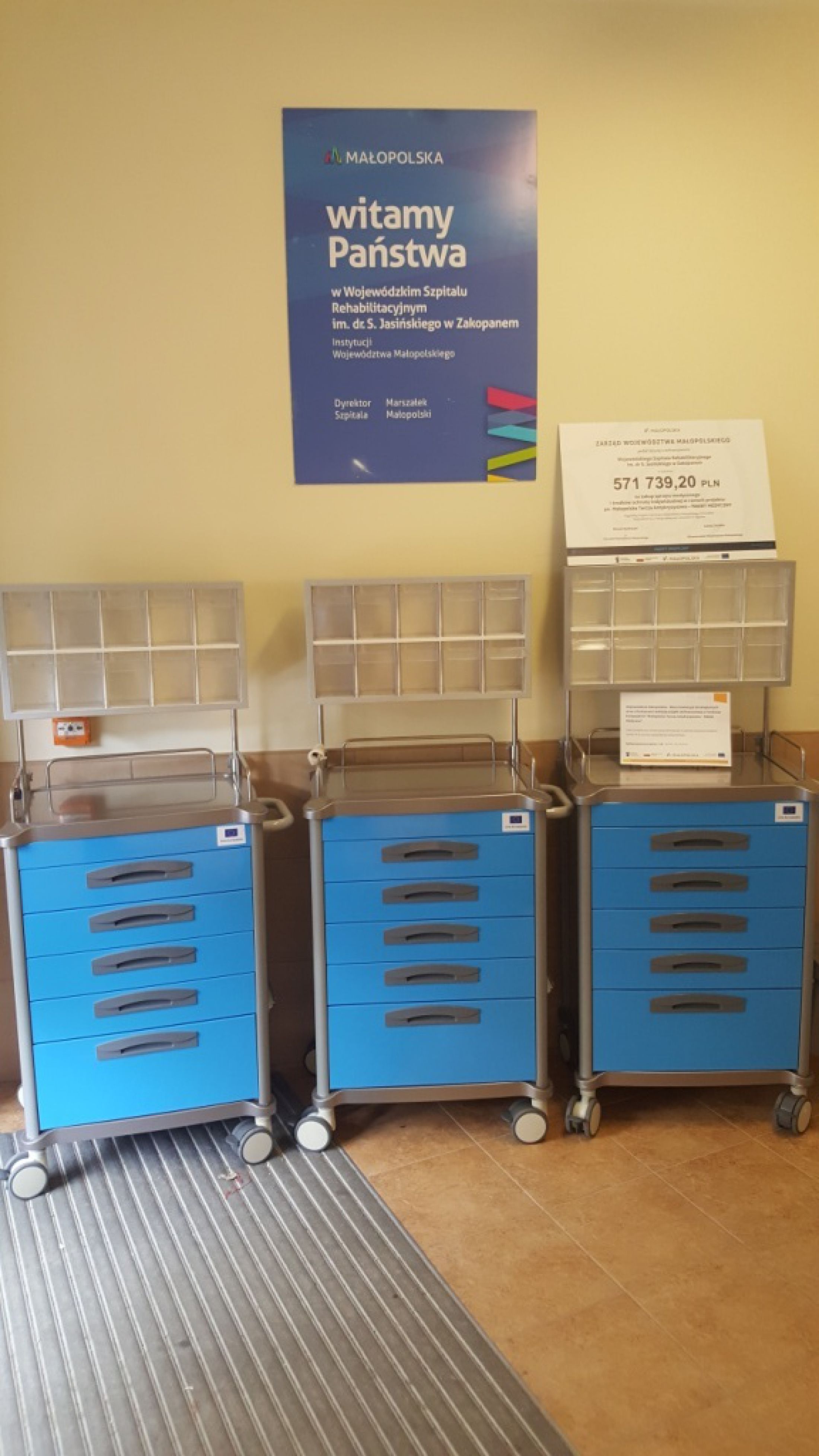 Właśnie pojawiły się zakupione w ramach postępowania przetargowego sprzęt i aparatura medyczna : aparaty ekg- szt. 2, defibrylator – szt. 1, pompy infuzyjne szt. 6, kardiomonitory – szt.5, lampy bakteriobójcze szt. 6, szafki medyczne z blatami do sporządzania leków – szt. 3, aparaty do dekontaminacji gorącą parą szt.5, samobieżna maszyna czyszcząca do powierzchni szpitalnych szt. 1, pościel medyczna, środki dezynfekcyjne, wyroby medyczne na łączną kwotę: 169.784,00zł