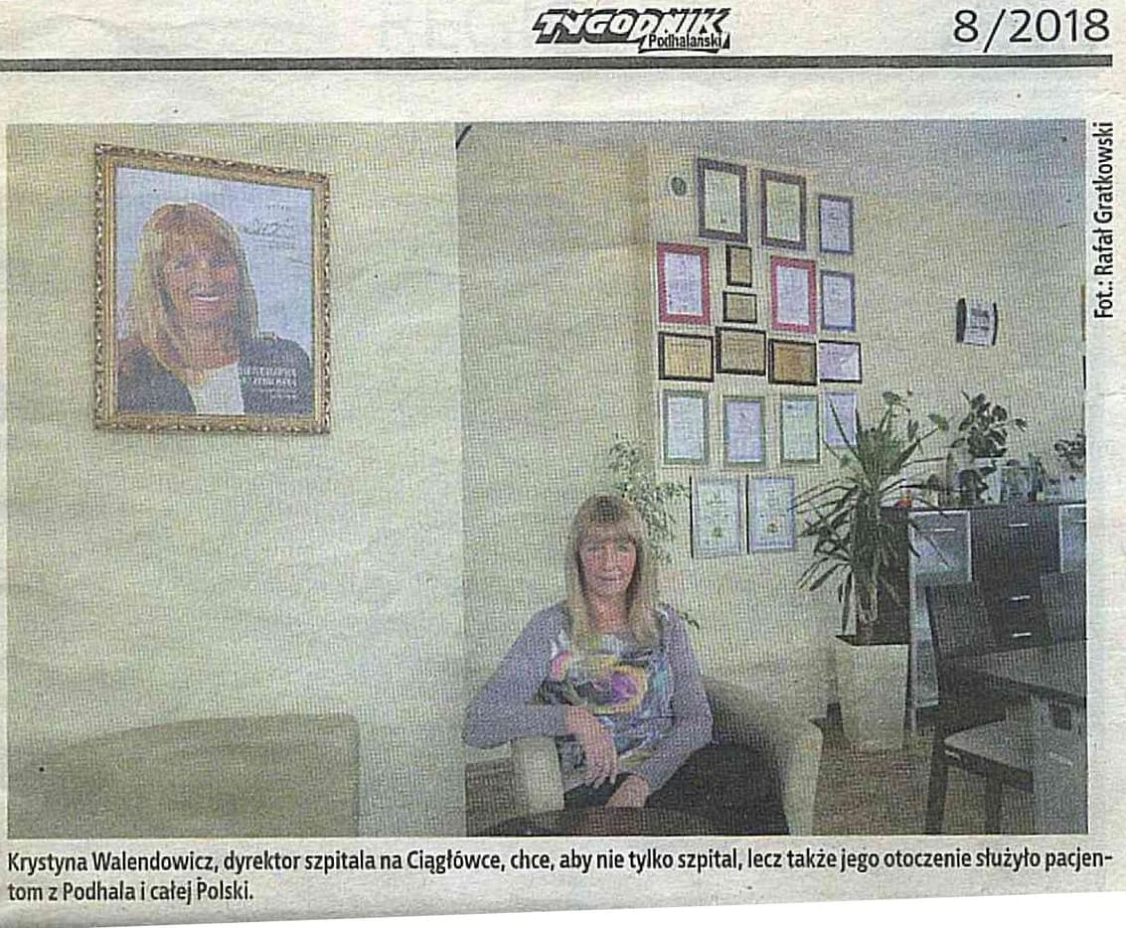 Wywiad z Dyrektor Wojewódzkiego Szpitala Rehabilitacyjnego im. dr S. Jasińskiego w Zakopanem. Tygodnik Podhalański luty 2018.