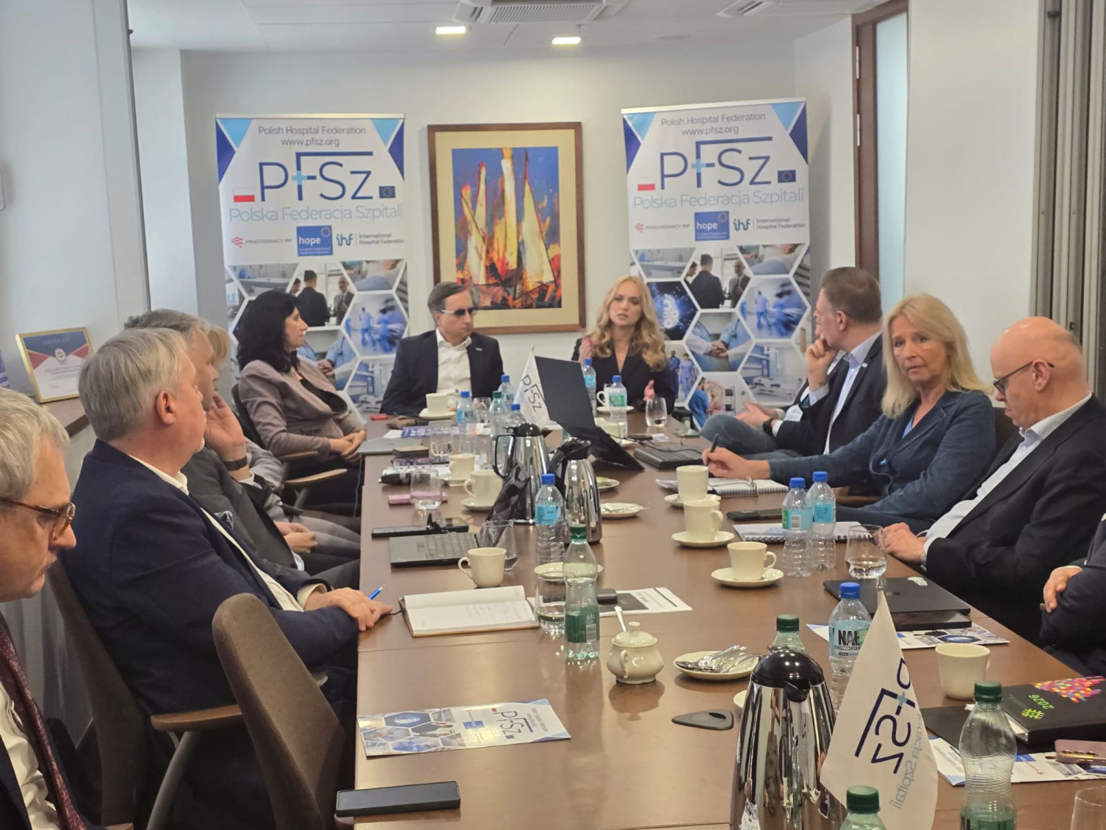 W dniu 15.04.2026 r. odbyło się posiedzenie Zarządu oraz Rady Naczelnej Polskiej Federacji Szpitali. W spotkaniu udział wzięła Minister Zdrowia Pani dr Jolanta Sobierańska-Grenda. Była to więc doskonała okazja do rozmowy o szeroko pojętych problemach ochrony zdrowia. Rozmawiano więc m.in. o: konsolidacji i koordynacji w opiece zdrowotnej, nadwykonaniach, cyberbezpieczeństwie, innowacjach w polskich szpitalach, kondycji finansowej Narodowego Funduszu Zdrowia i podmiotów leczniczych, ustawie podwyżkowej, inwestycjach finansowanych w ramach KPO, współpłaceniu za świadczenia zdrowotne, akredytacji szpitali, europejskim programie wymiany menedżerów. Wielość poruszanych podczas spotkania wątków daje nadzieję, że przynajmniej część z nich doczeka się prawnej regulacji.