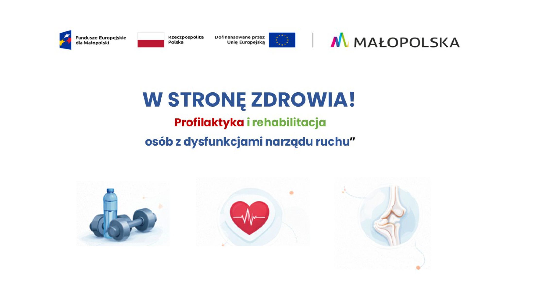 Trwa projekt "W STRONĘ ZDROWIA! - Profilaktyka i rehabilitacja osób z dysfunkcjami narządu ruchu w Wojewódzkim Szpitalu Rehabilitacyjnym im. dr. S. Jasińskiego w Zakopanem”.