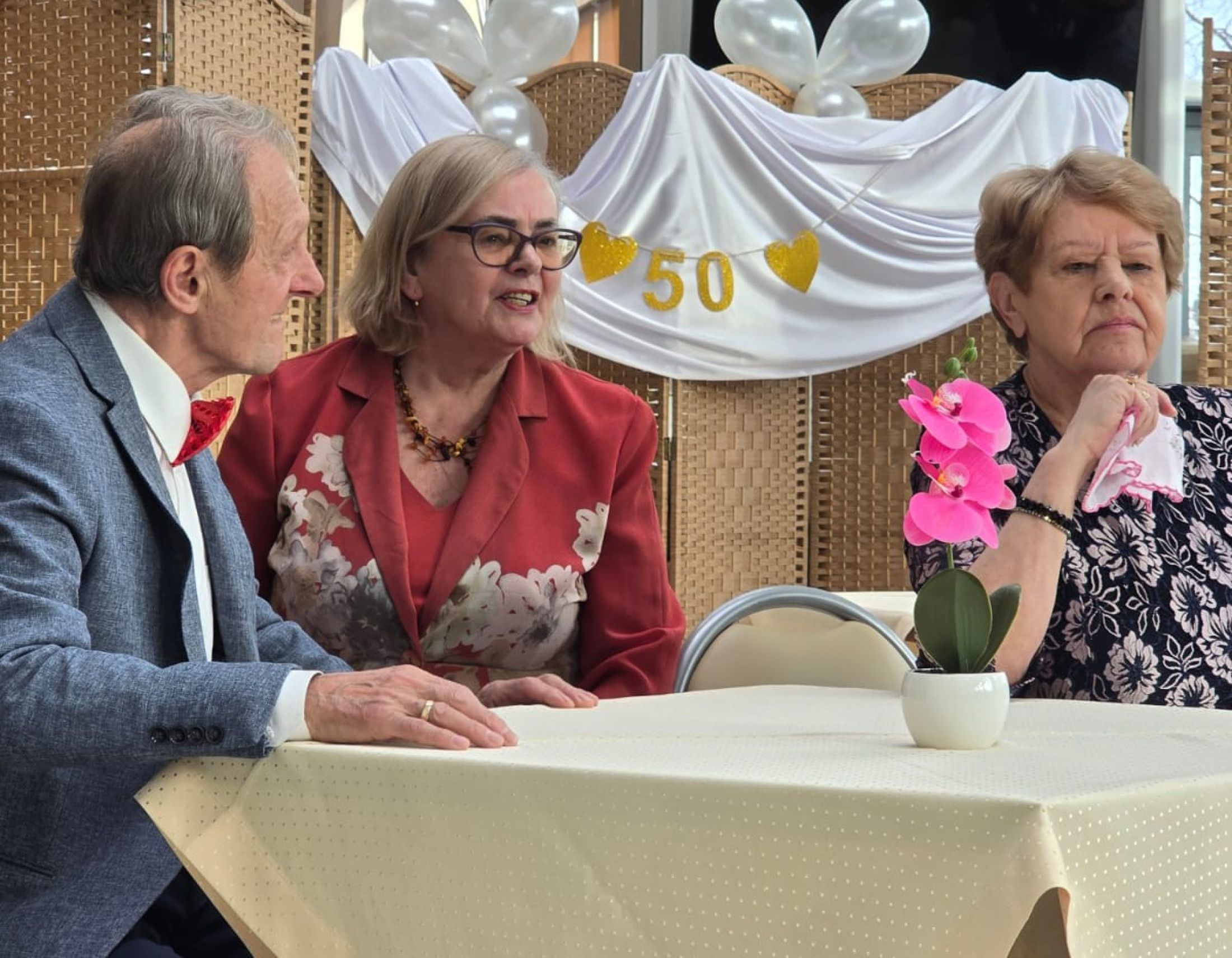 Niech ten tytuł nie zwiedzie. Szpital nie zorganizował jubileuszowego zjazdu pracowników, ani pacjentów. „Zjazd Jubileuszowy” to tytuł widowiska teatralnego, które zaprezentowane zostało pacjentom przez Grupę Teatralną Stowarzyszenia Rodziny Kolpinga z Luborzycy. Inscenizacja oparta została na tekstach Sławomira Mrożka, Jeremiego Przybory i Kabaretu Hrabi. Już ten zestaw nazwisk obiecywał doskonałą zabawę. I tak było rzeczywiście. Bo czyż nie jest zabawne obserwować spotkanie po 50 latach, gdy zmieniamy się nie tylko fizycznie, ale zmieniają się i poglądy. Sami już albo doświadczaliśmy takich spotkań po latach, albo takie spotkania jeszcze przed nami. A jak mogą wyglądać – właśnie nam pokazano.