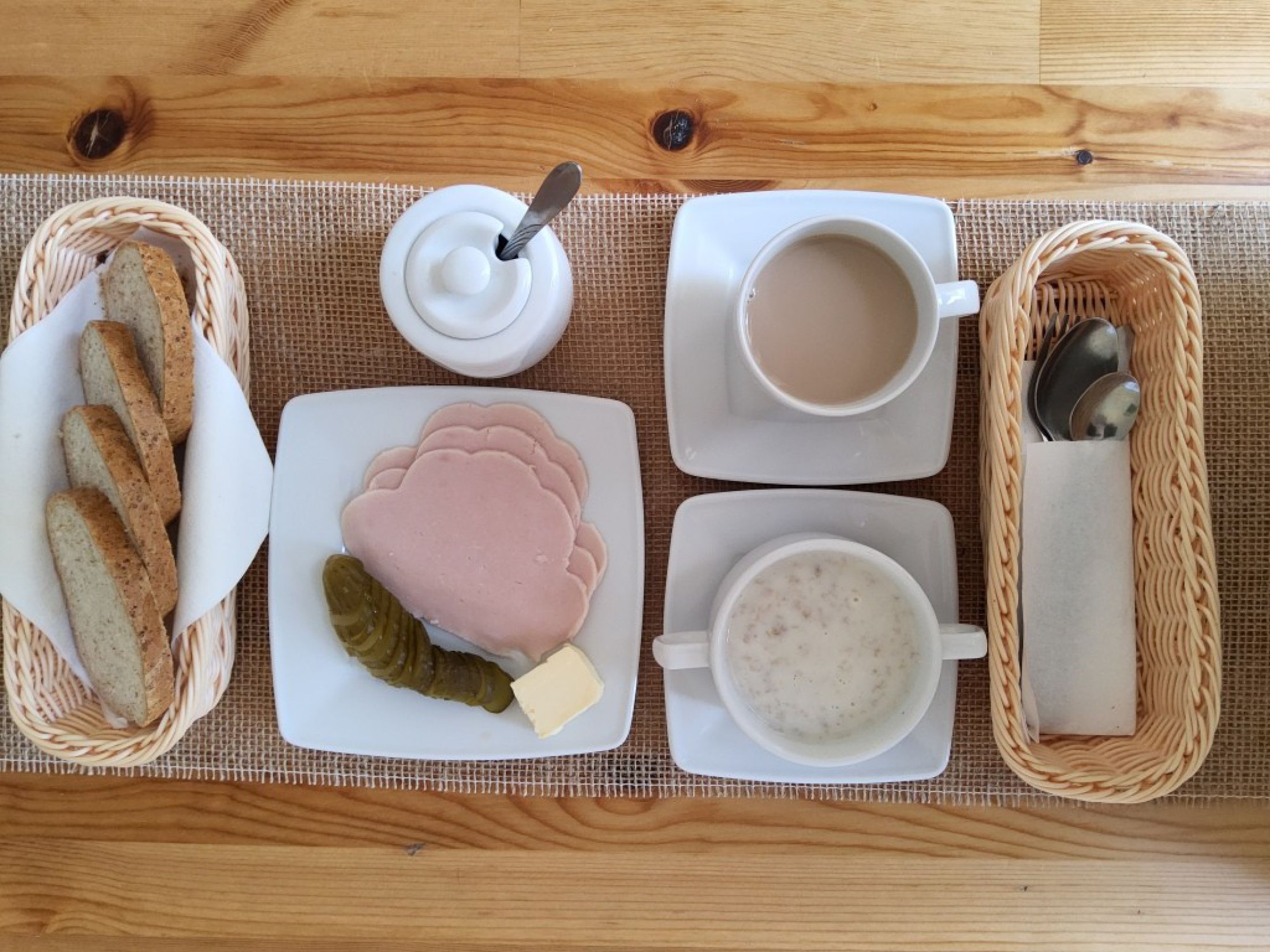 | dieta podstawowa | 180 g Kasza manna na mleku (gluten, laktoza) 110 g Chleb graham (gluten) 10g Miks (laktoza) 40 g Wędlina wieprzowa 30 g Ser żółty (laktoza) 100g Ogórek kiszony, pomidor, cebula 250g Kawa zbożowa z mlekiem (laktoza) 5 g Cukier |